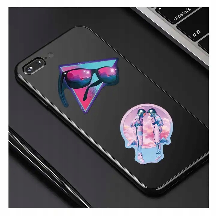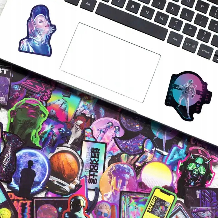 HOLOGRAFICZNY ZESTAW NAKLEJEK WODOODPORNE NA BIDON LAPTOP WLEPKI MIX 50 szt