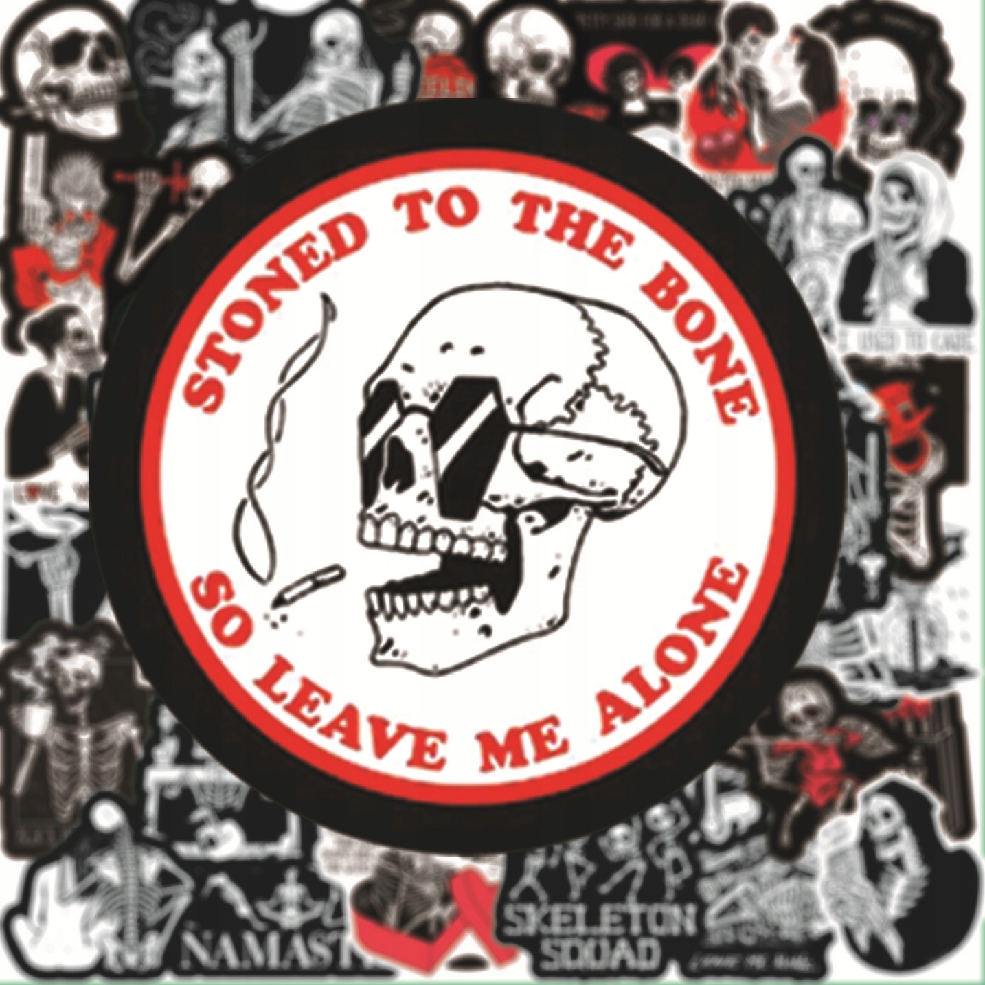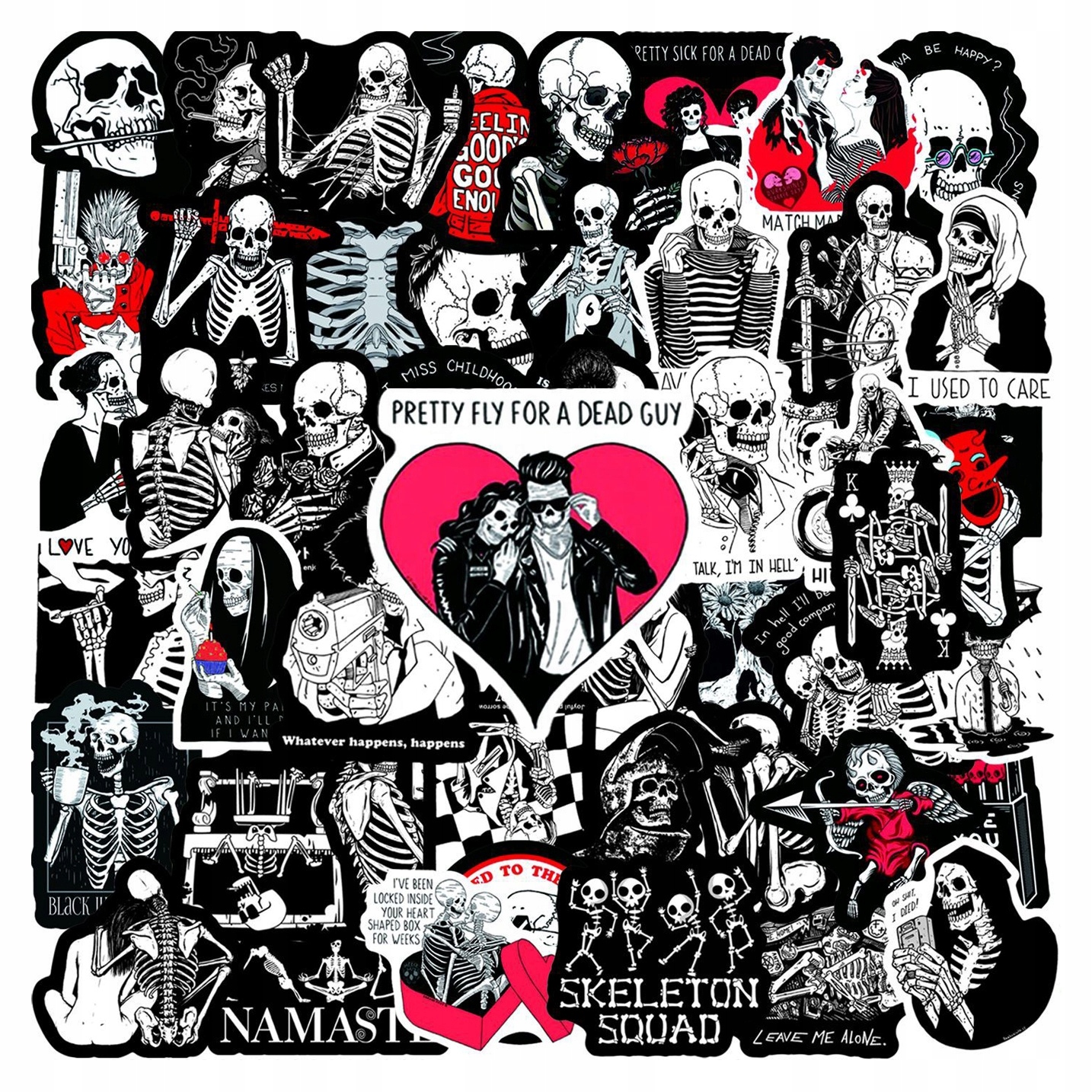 KOŚCIOTRUP NAKLEJKI WODOODPORNE NA BIDON LAPTOP BŁYSK MIX SZKIELET 50 szt