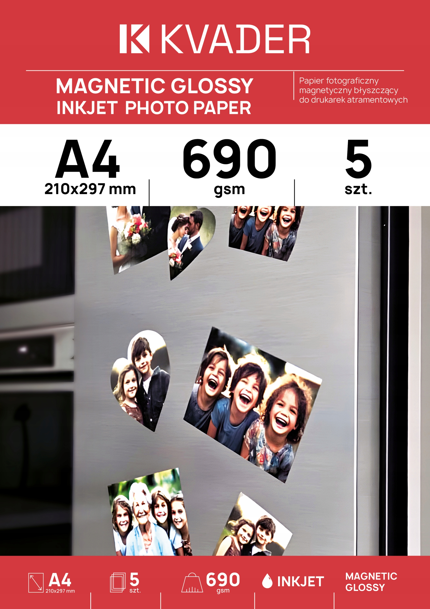 Papier pokryty z jednej strony warstwą magnetyczną, która pozwala na przyczepienie wydrukowanych zdjęć do lodówki, regałów i innych powierzchni metalowych