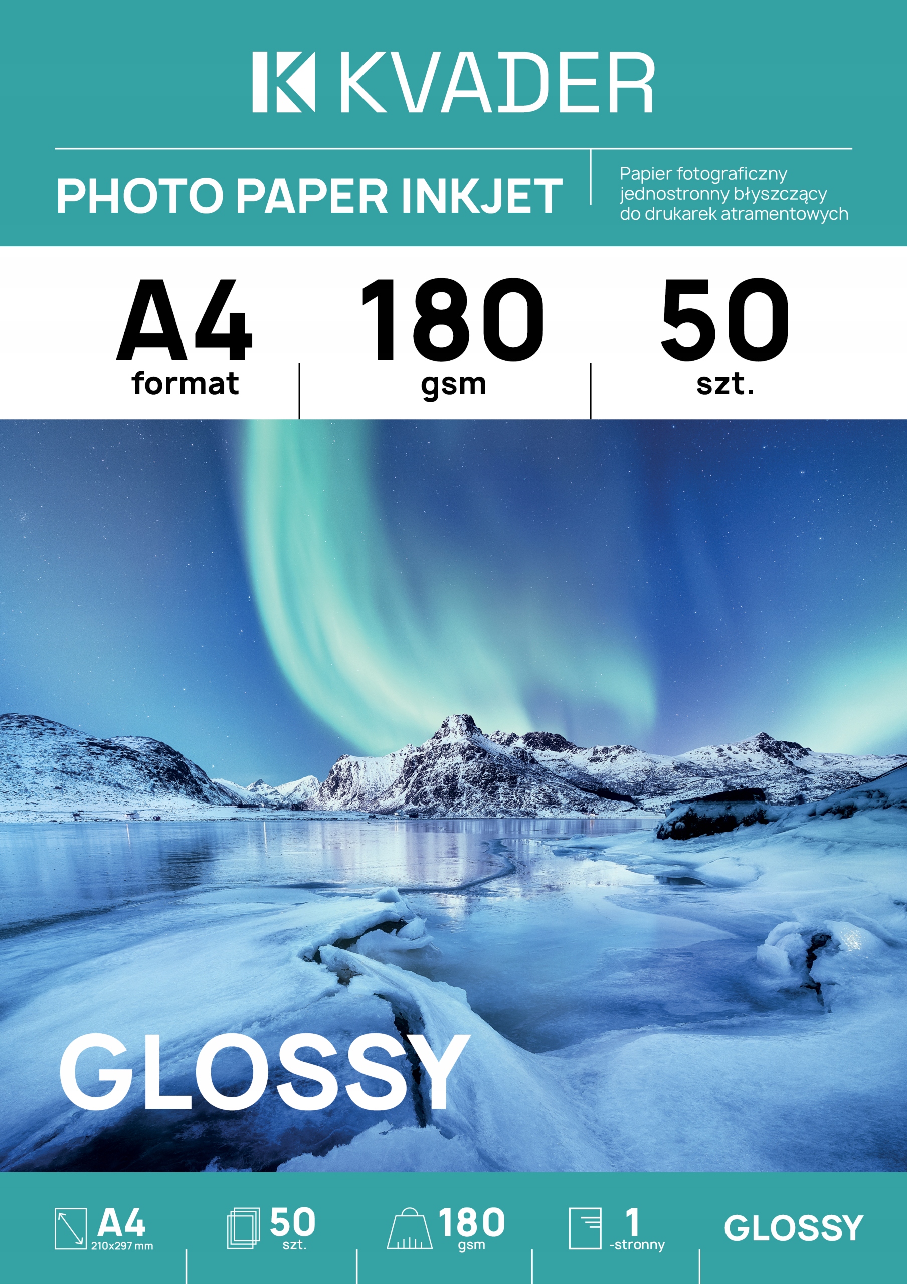 PAPIER BŁYSZCZĄCY A4 DO ZDJĘĆ FOTO 180g POŁYSK 50szt DO DRUKAREK ATRAMENT