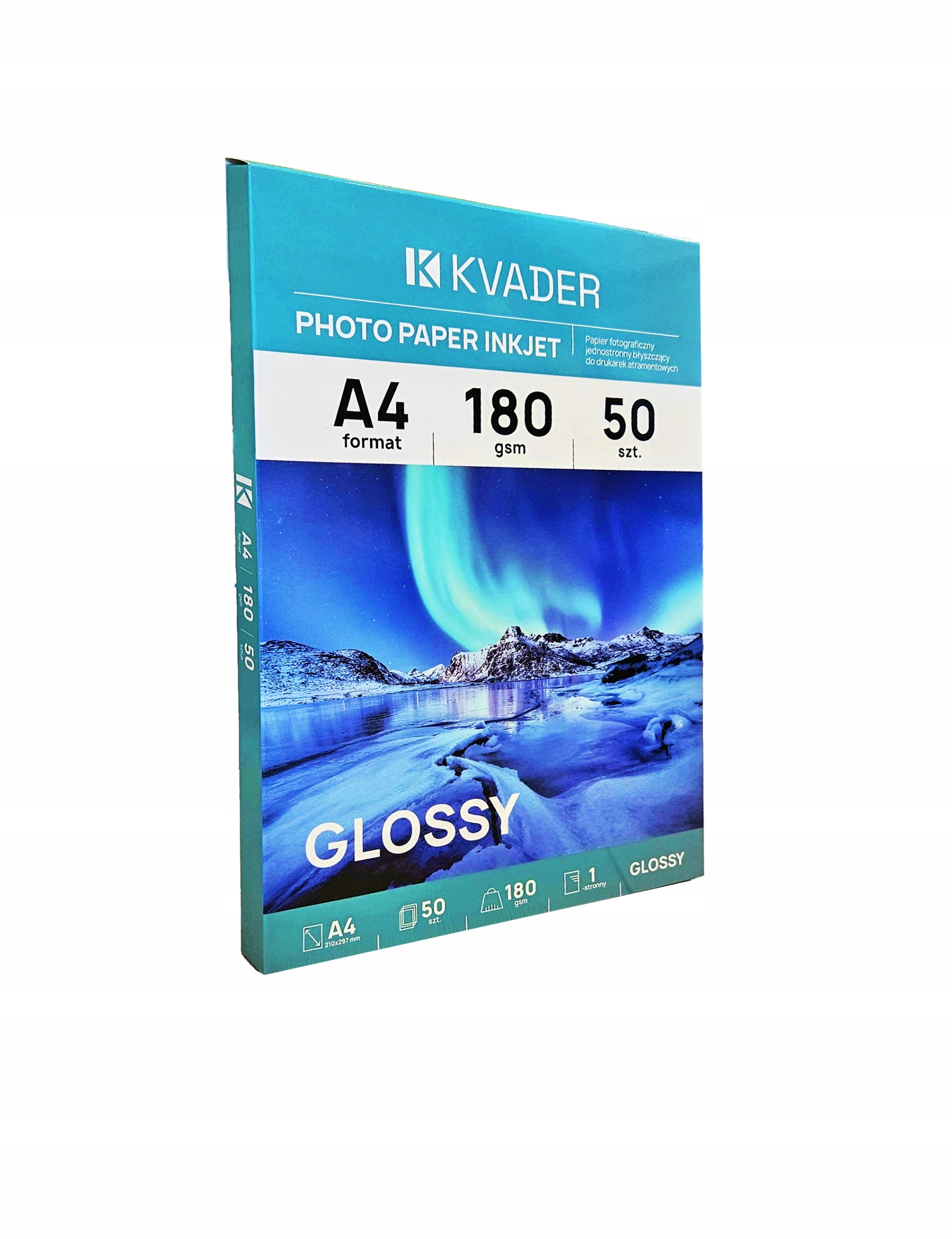 PAPIER BŁYSZCZĄCY A4 DO ZDJĘĆ FOTO 180g POŁYSK 50szt DO DRUKAREK ATRAMENT