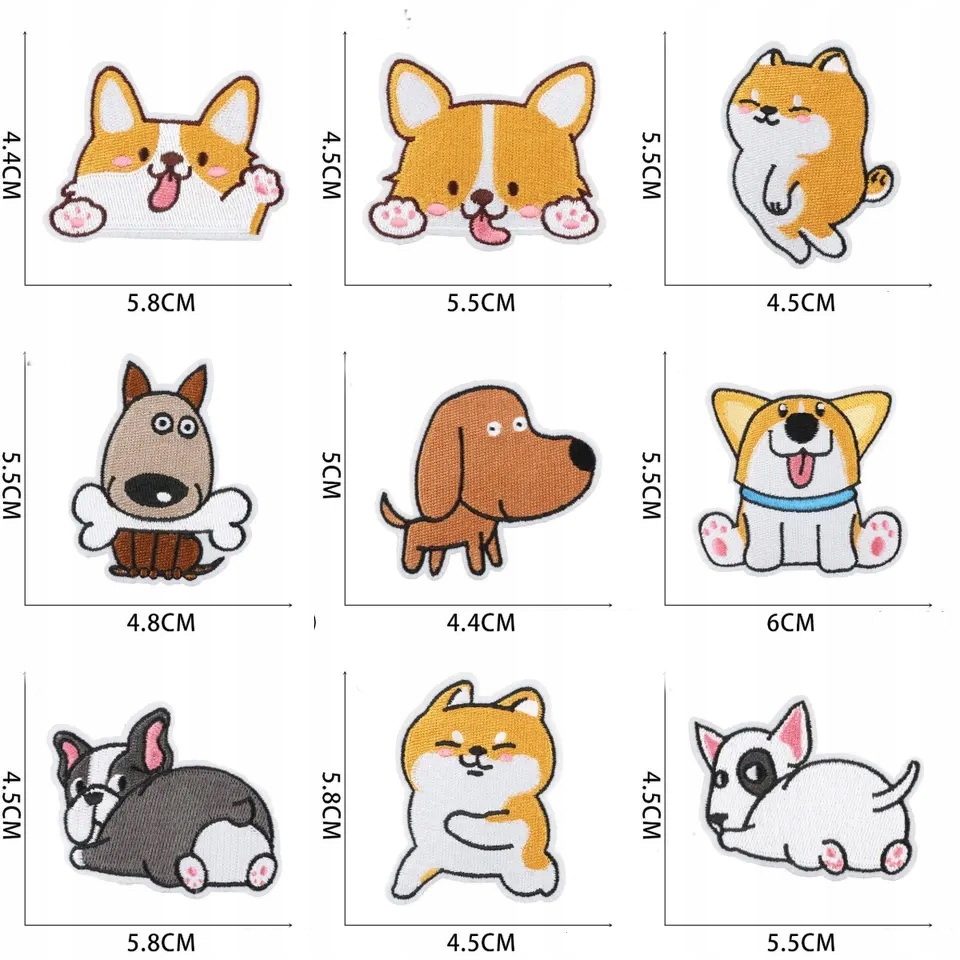 PIESKI I KOTY TERMO NASZYWKI 6x5cm HAFT MIX 22szt