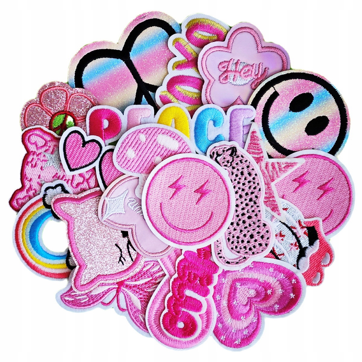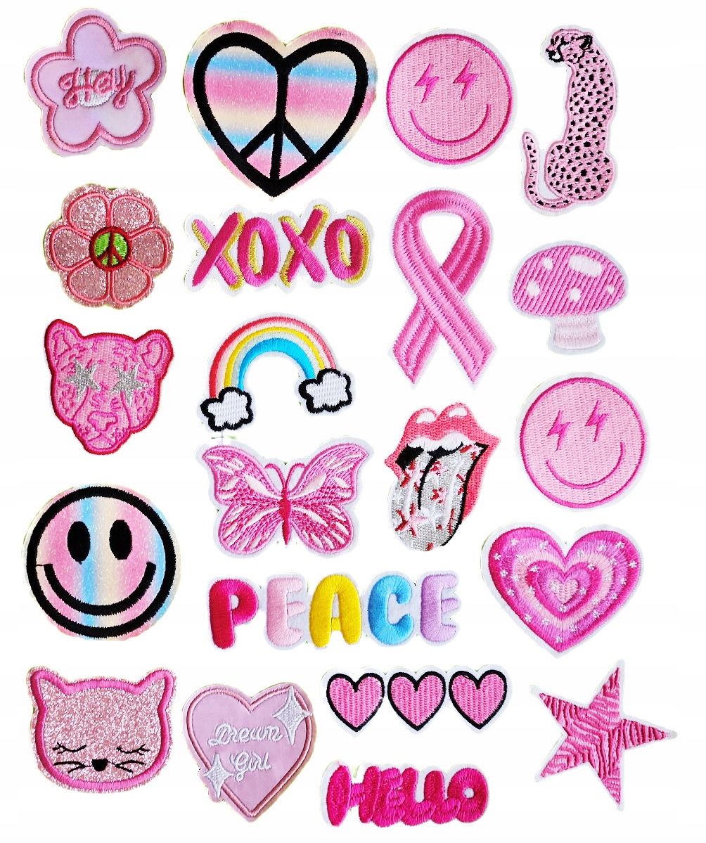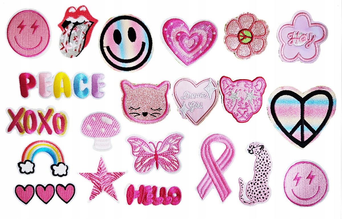 21 różnych naszywek w zestawie, każda ma inny kształt a rozmiar