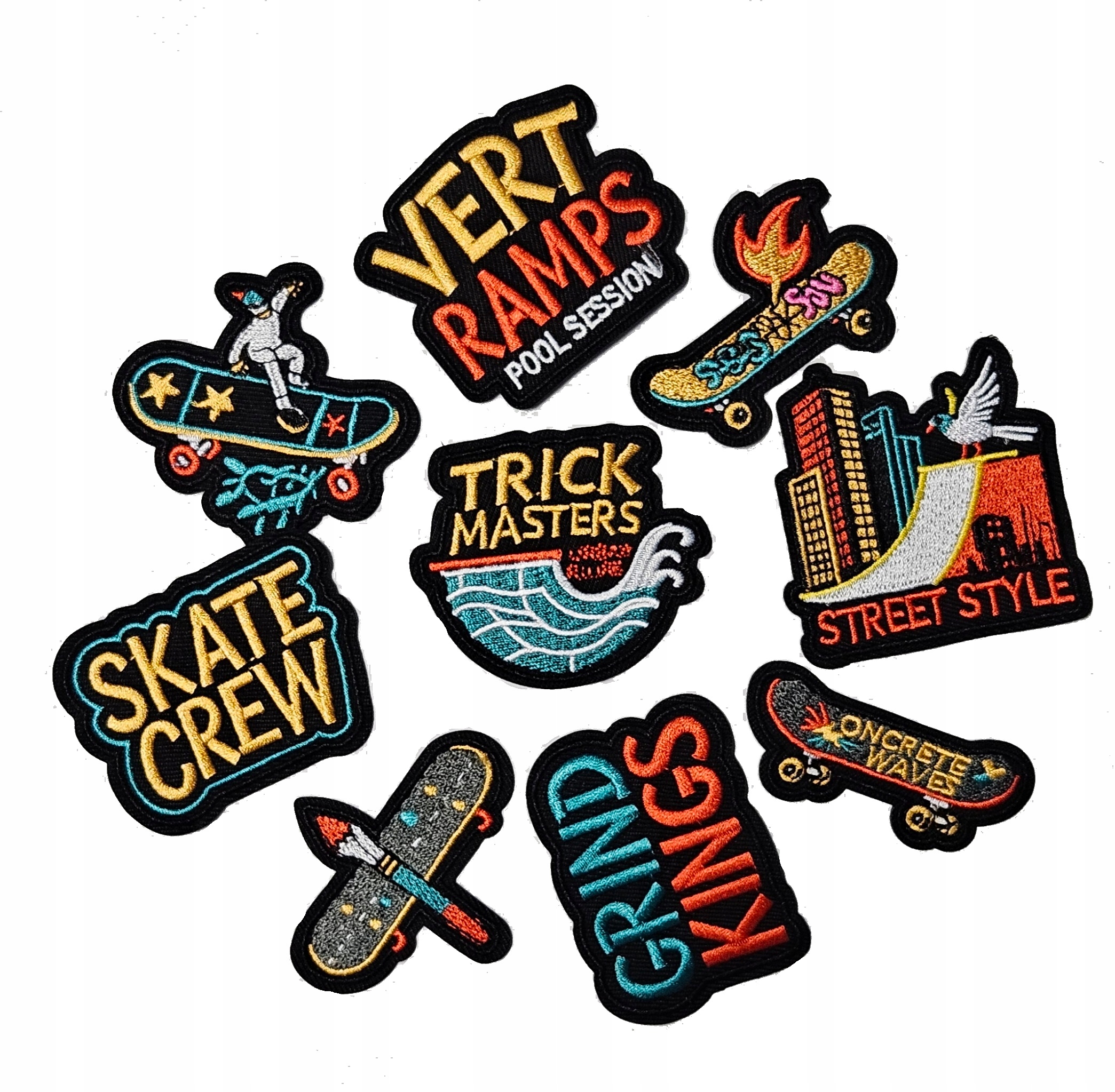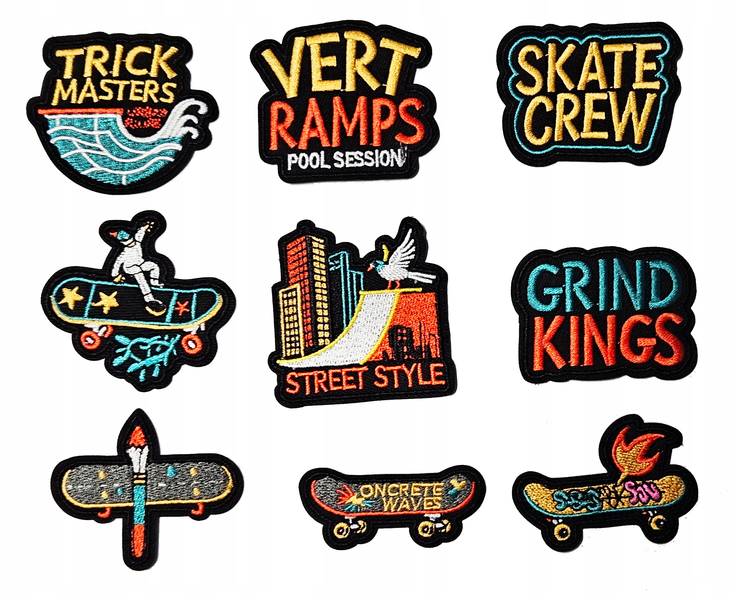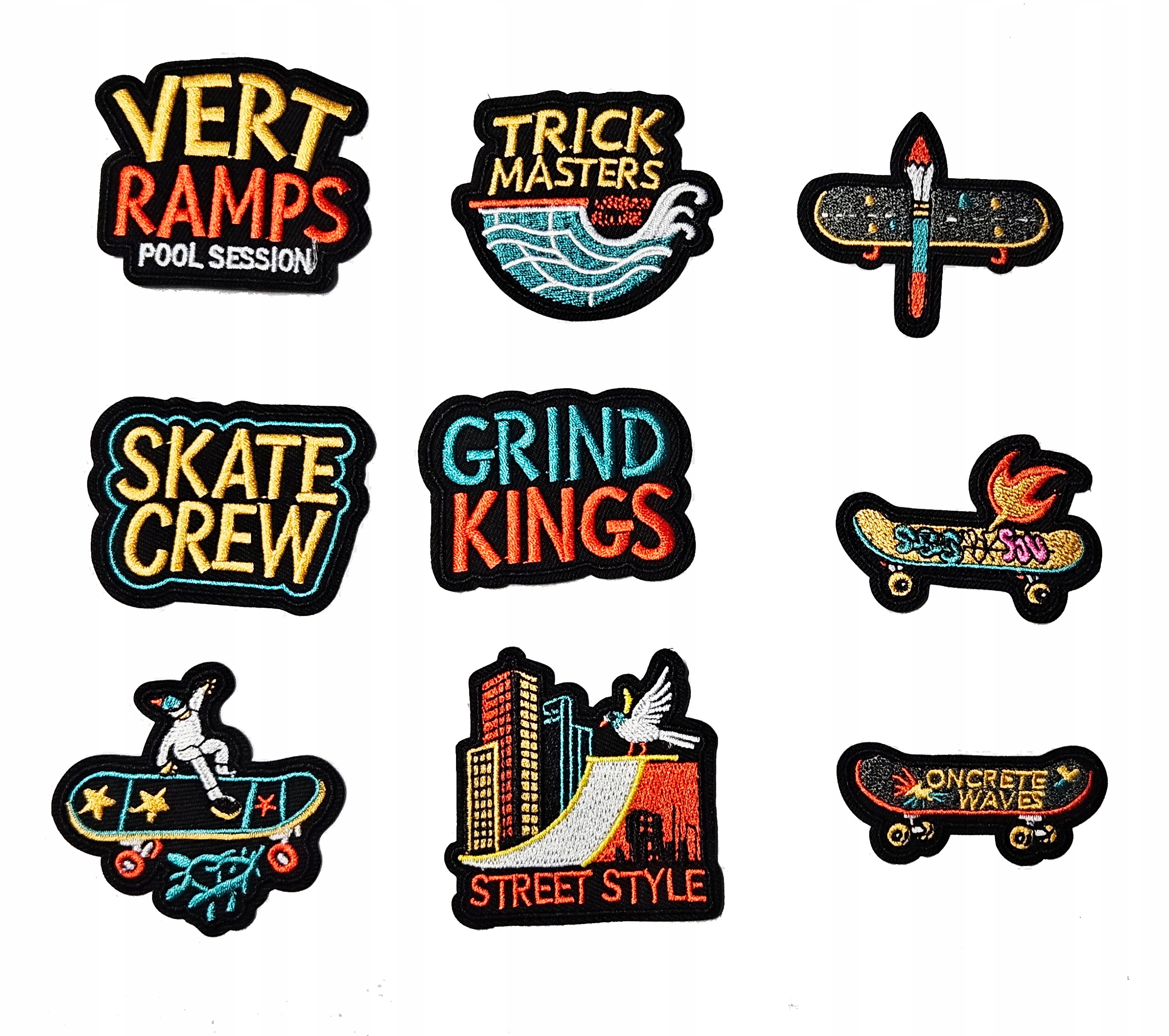 19 różnych naszywek w zestawie, każda ma inny kształt a rozmiar