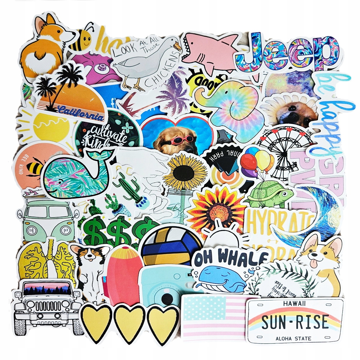 HAPPY SUMMER TIME UROCZE NAKLEJKI STICKERBOMB MIX LATO EXTRA WLEPY 50 szt