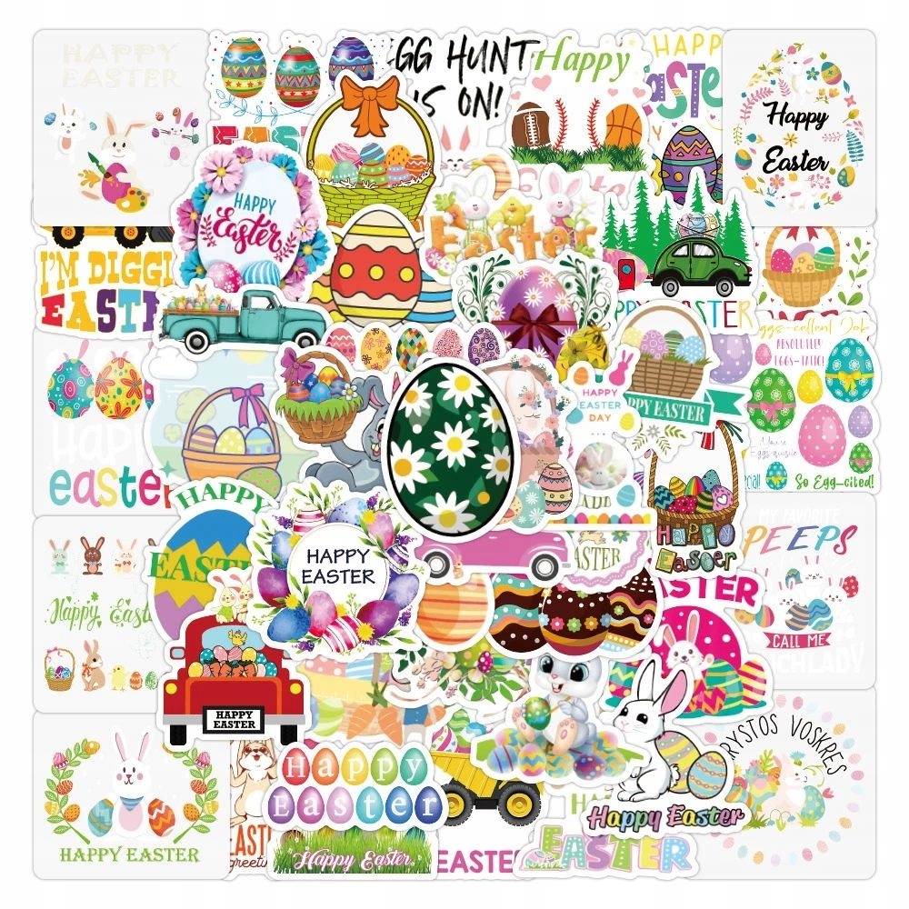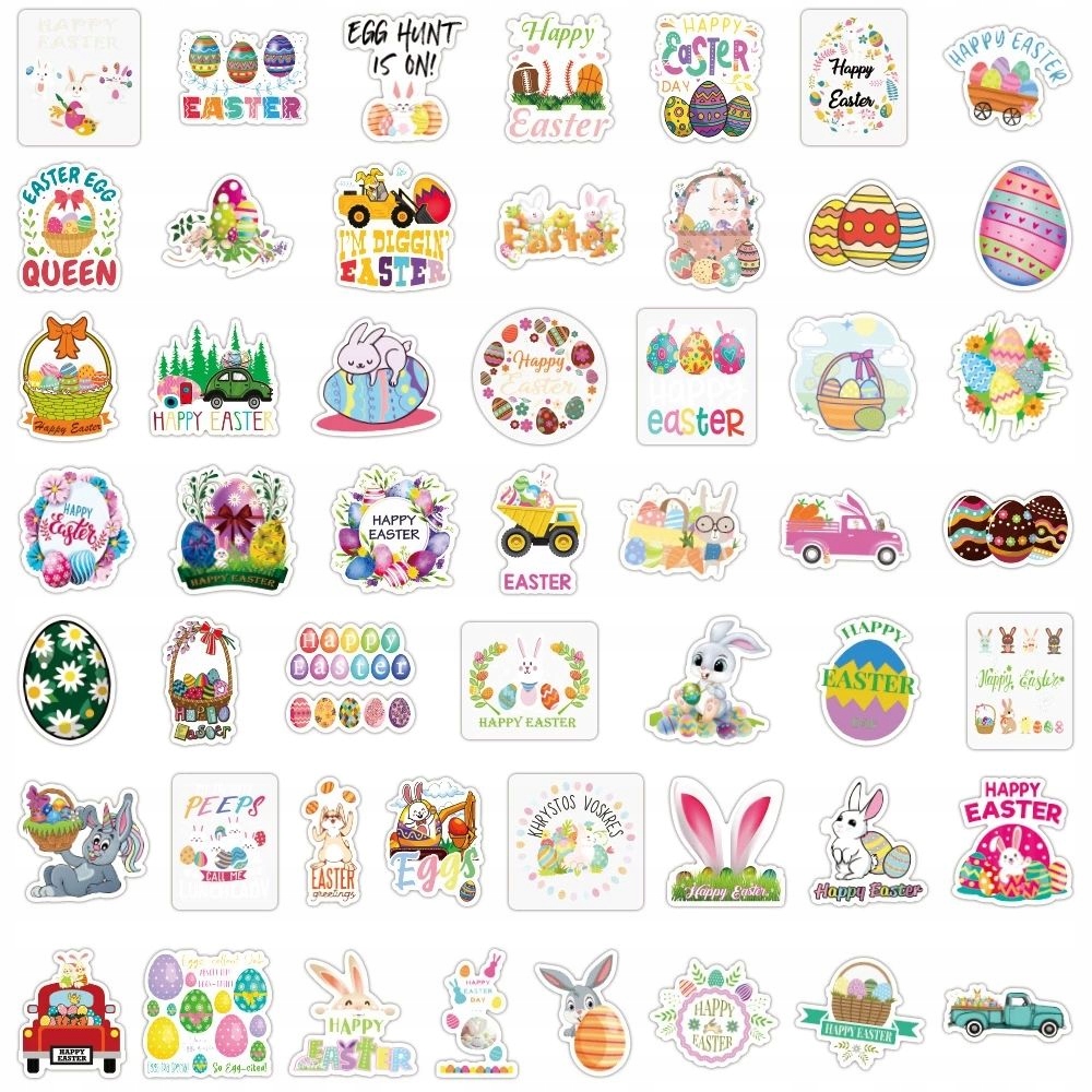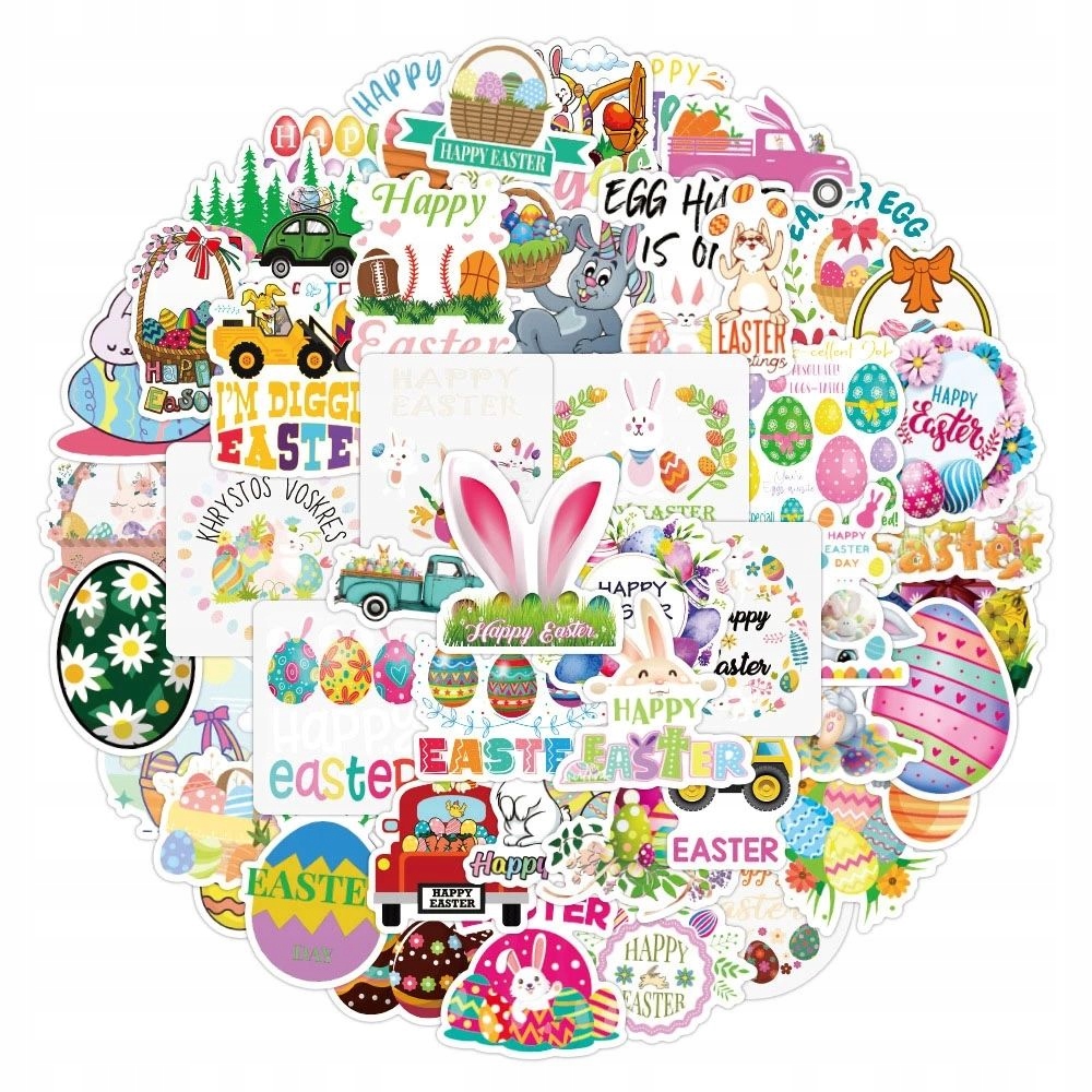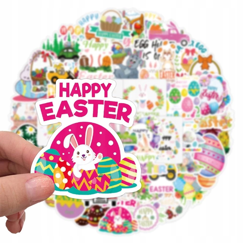 WIELKANOCNE NAKLEJKI NA PREZENT STICKERBOMB MIX ZAJĄCZEK EXTRA WLEPY 50 szt